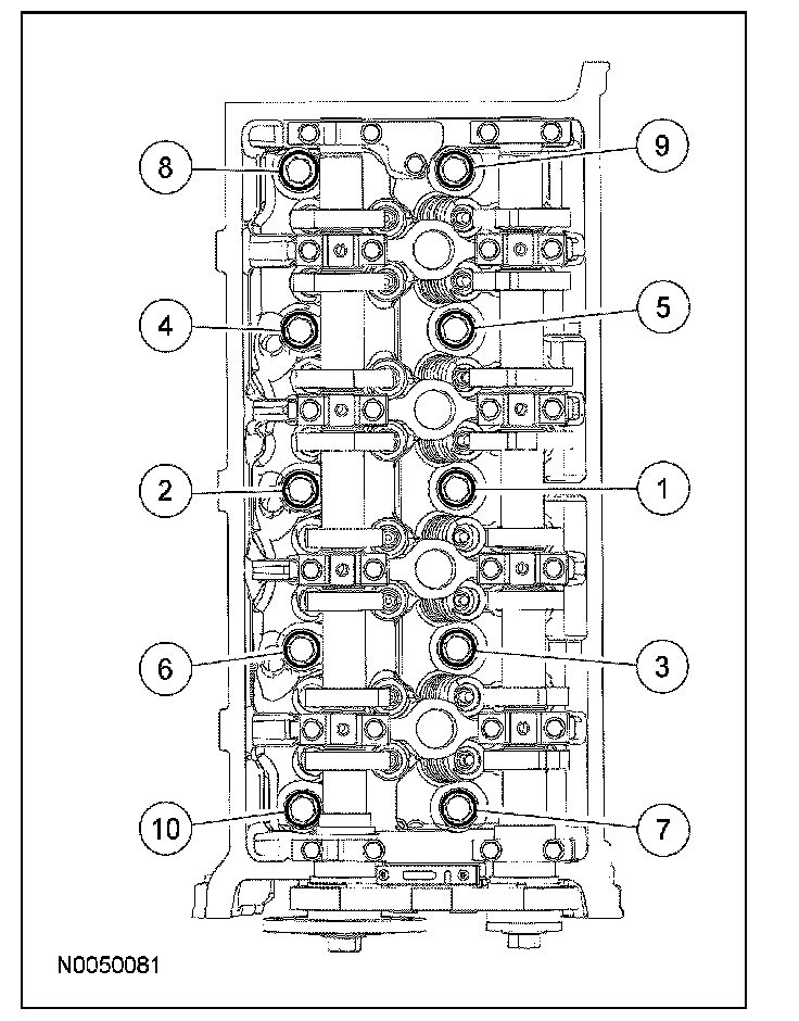 Camshaft Bearing Cap Bolts 10 Nm (89 lb-in).