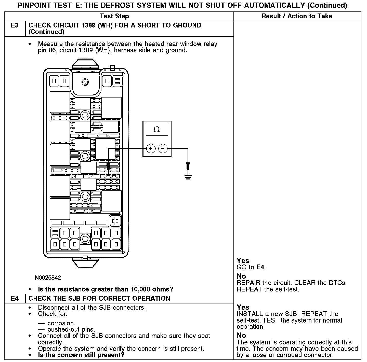 PINPOINT TEST E: THE DEFROST SYSTEM WILL NOT SHUT OFF AUTOMATICALLY
