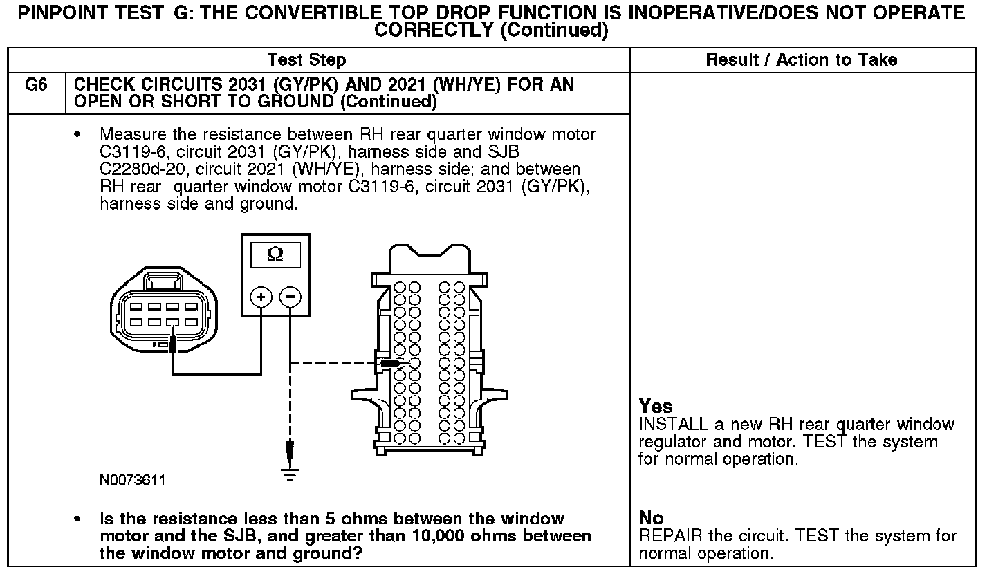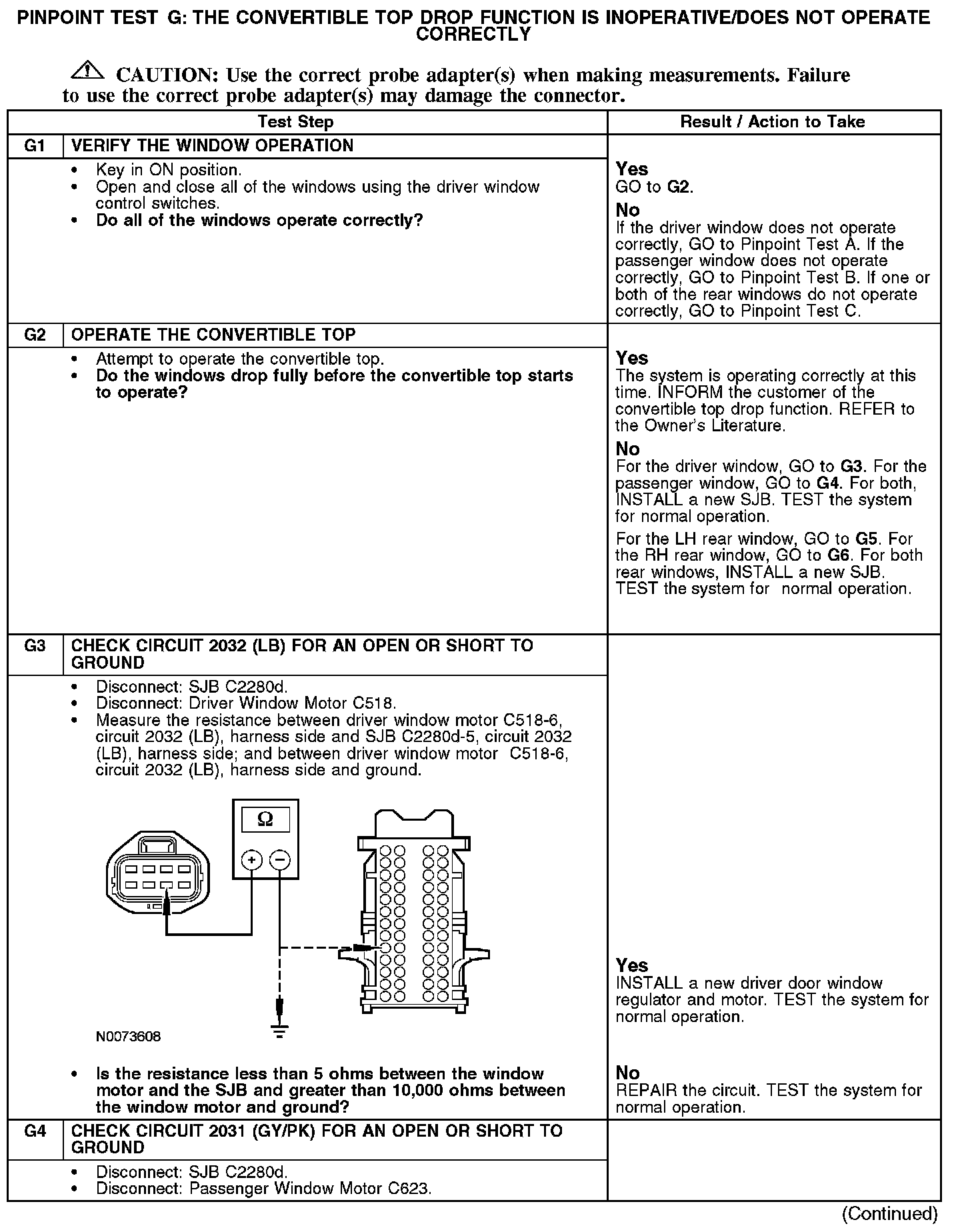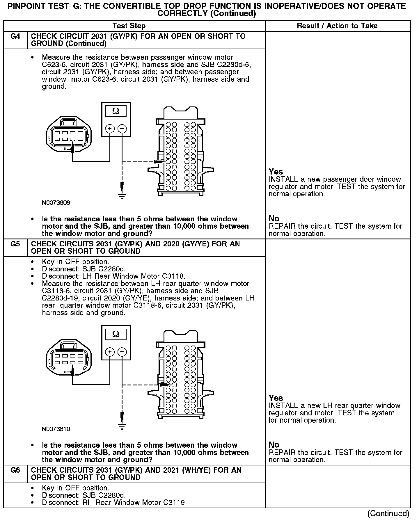 PINPOINT TEST G: THE CONVERTIBLE TOP DROP FUNCTION IS INOPERATIVE/DOES NOT OPERATE CORRECTLY