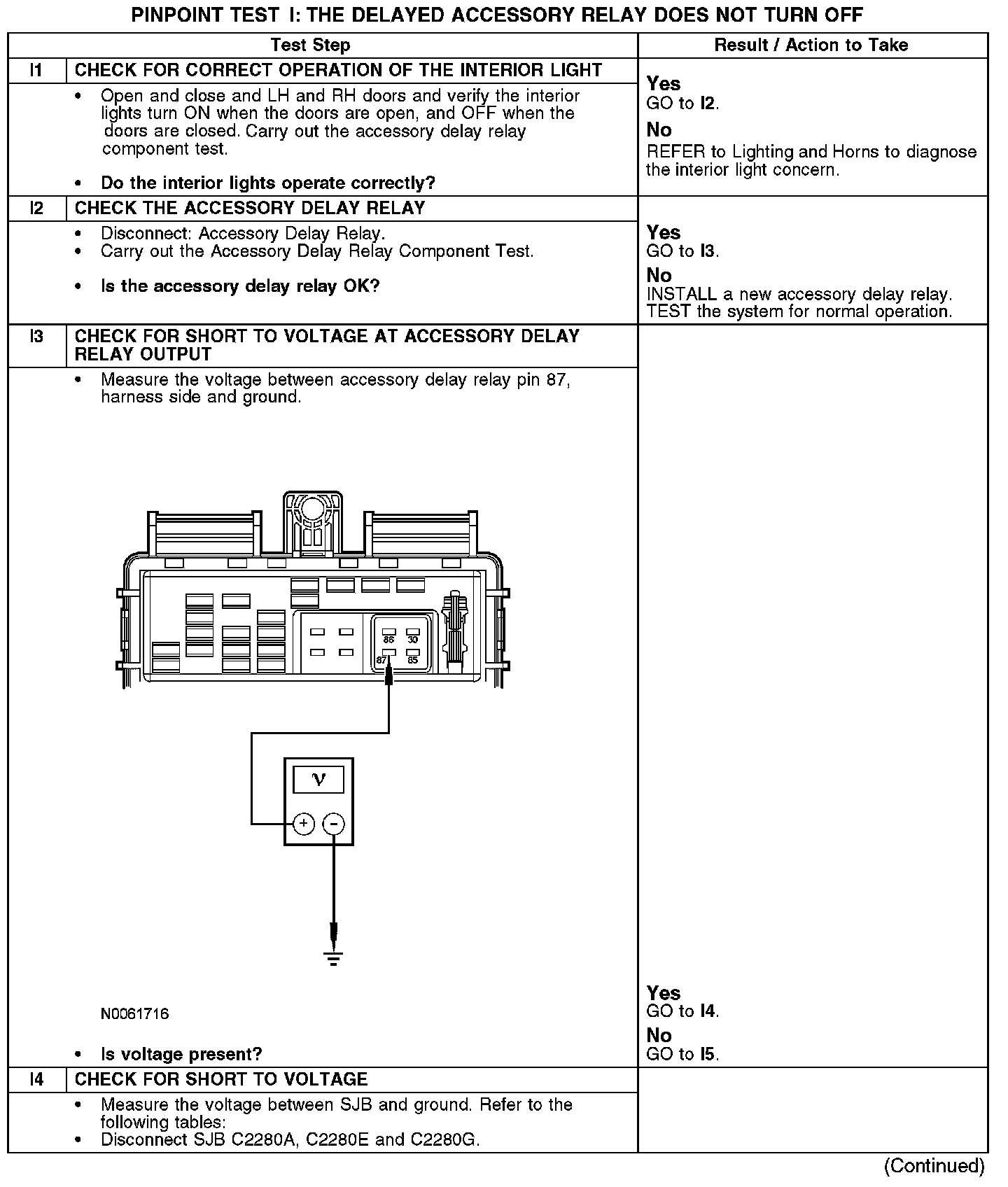 PINPOINT TEST I: THE DELAYED ACCESSORY RELAY DOES NOT TURN OFFNormal Operation