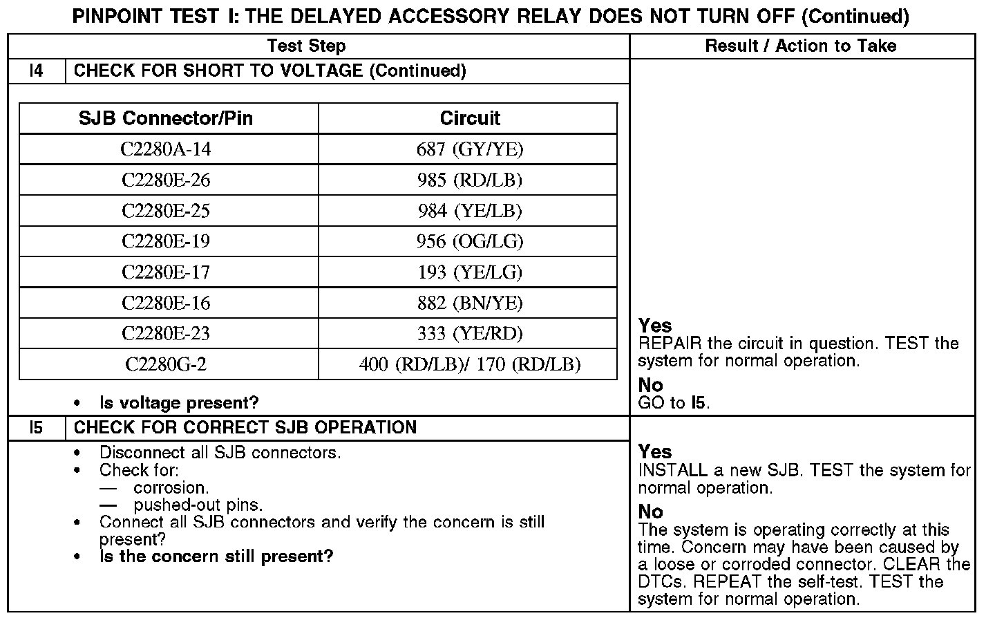 Test I: The Delayed Accessory Relay Does Not Turn Off