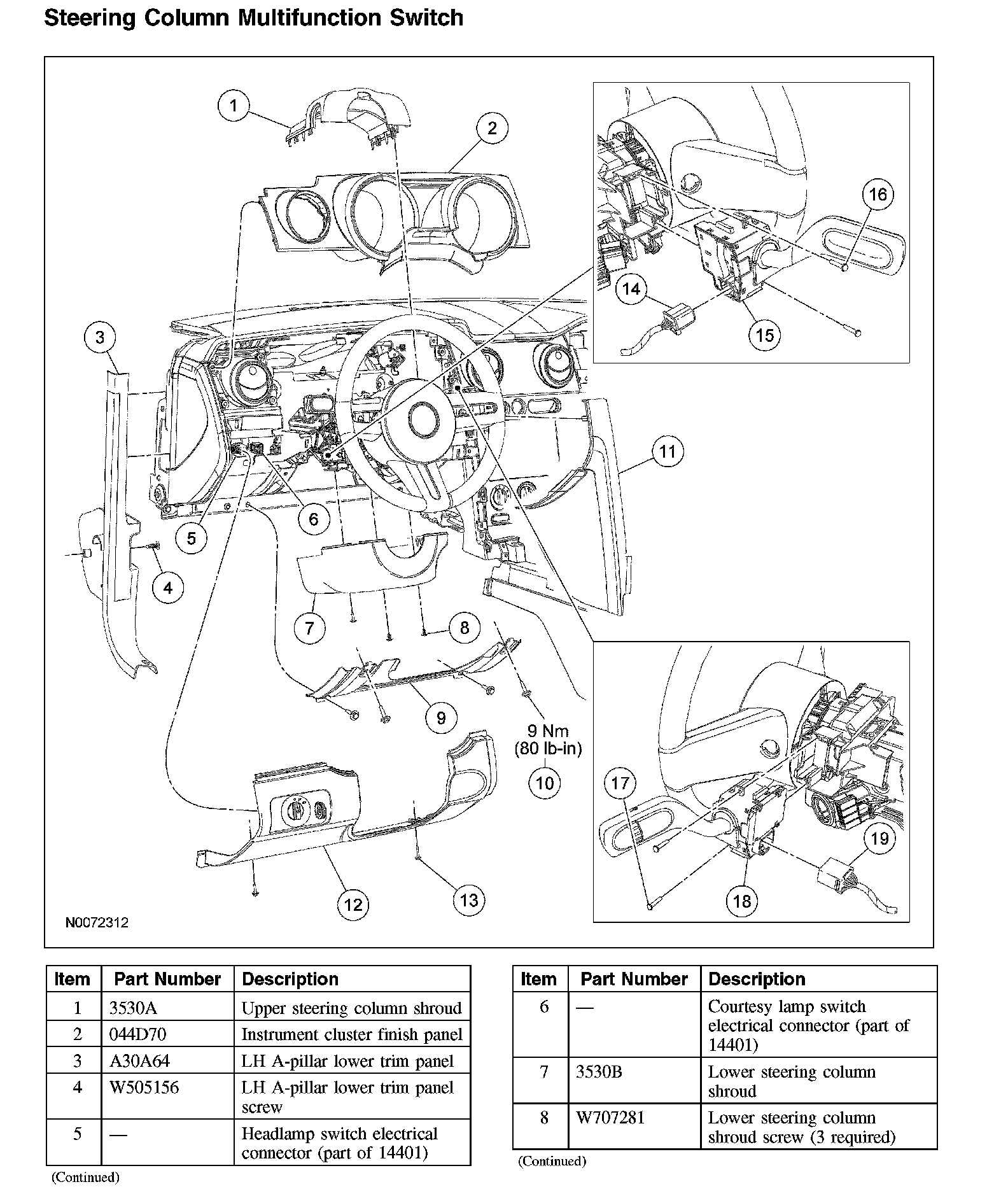 Steering Column Multifunction Switch (Part 2):