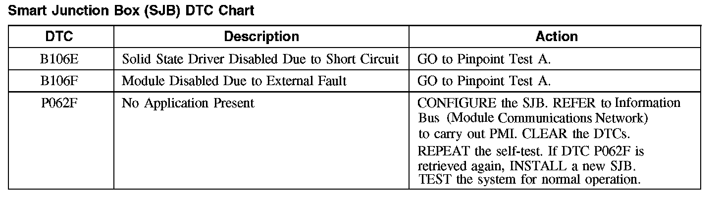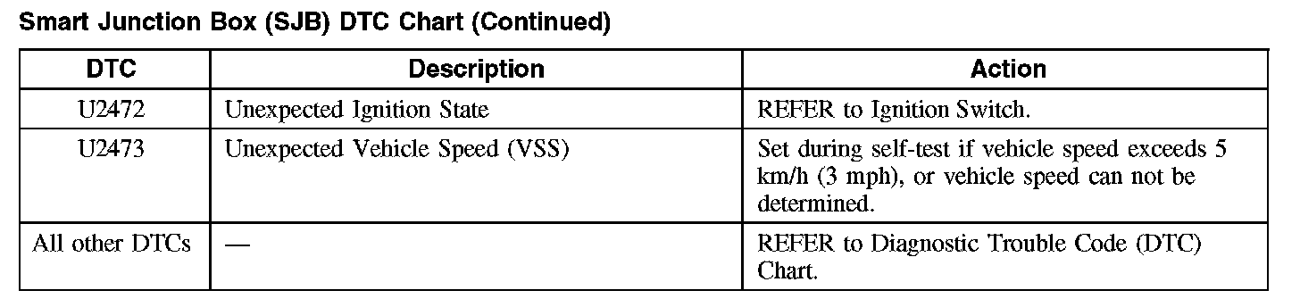 Smart Junction Box (SJB) DTC Chart