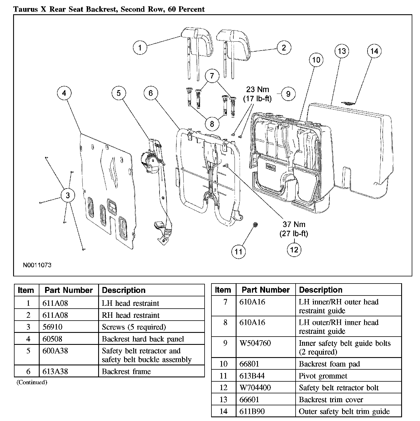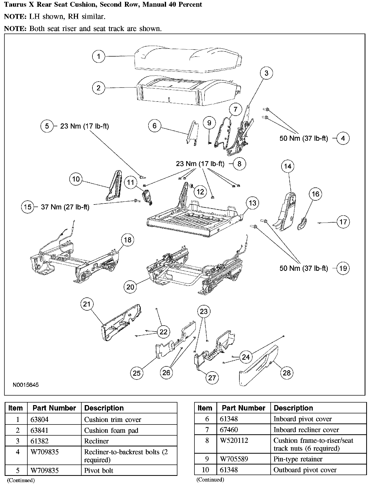 Taurus X Rear Seat Cushion, Second Row, Manual 40 Percent (Part 2):
