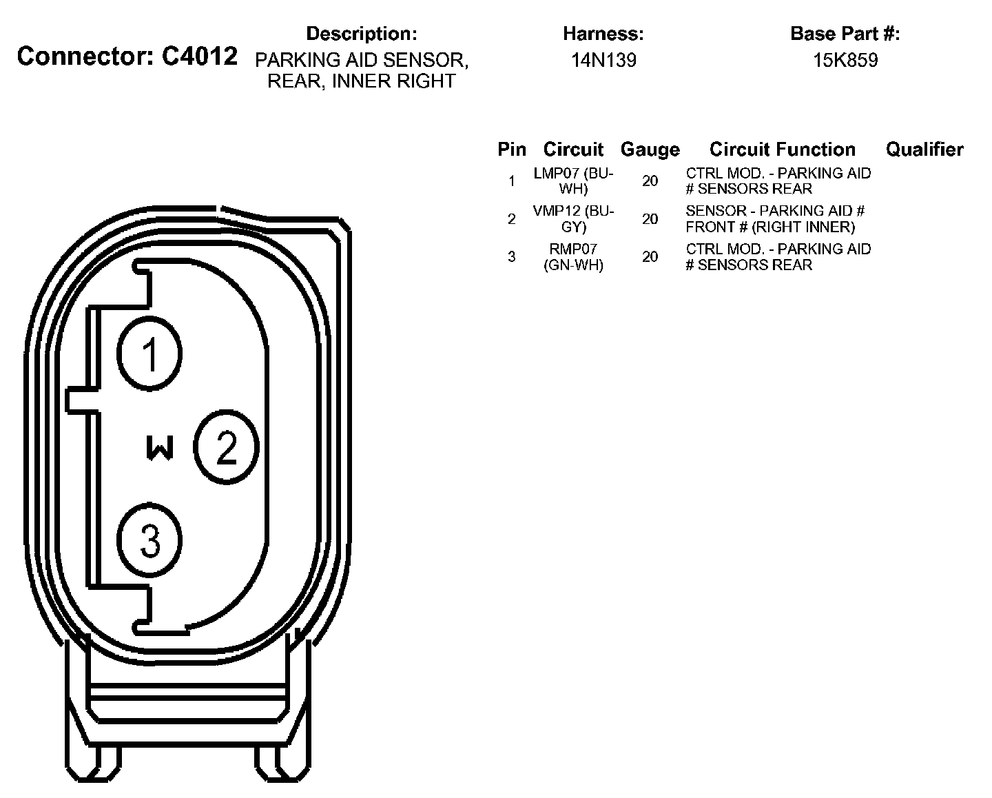 Parking Aid Sensor, Rear, Inner Right
