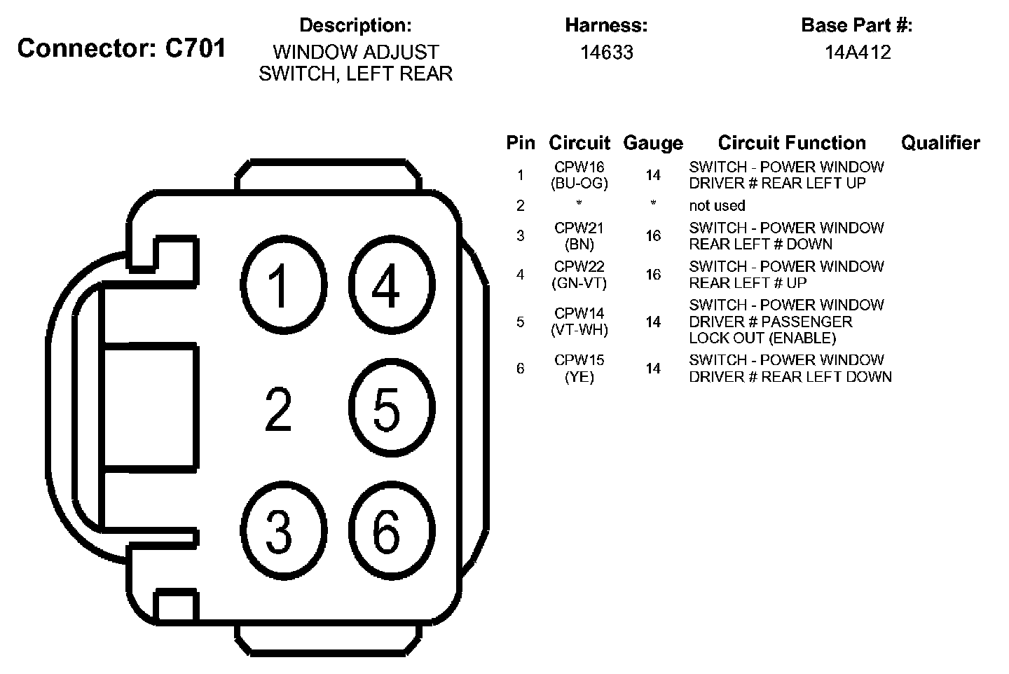 Window Adjust Switch, Left Rear