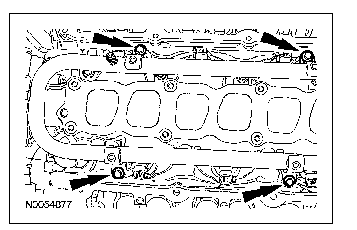 76. Install the fuel rail and injectors as an assembly and install the 4 bolts.