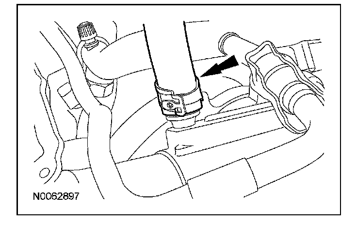 68. Remove the coolant by-pass hose from the thermostat housing.