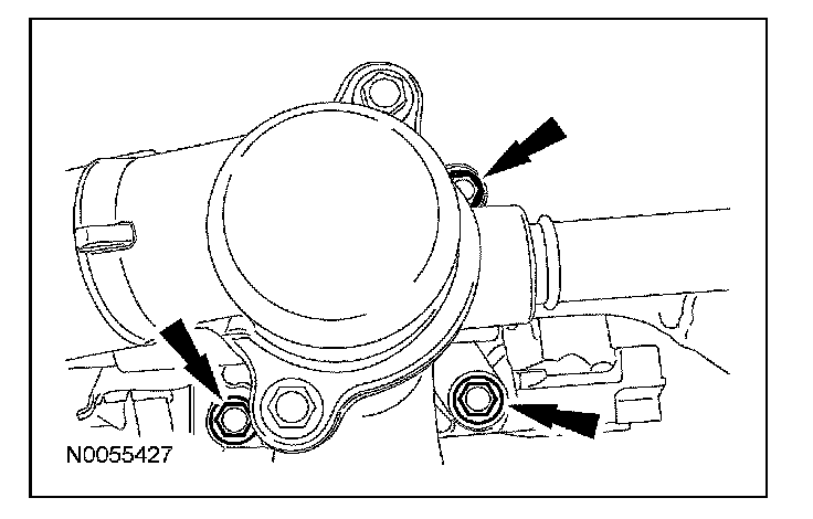 70. Remove the 3 thermostat housing-to-lower intake manifold bolts.