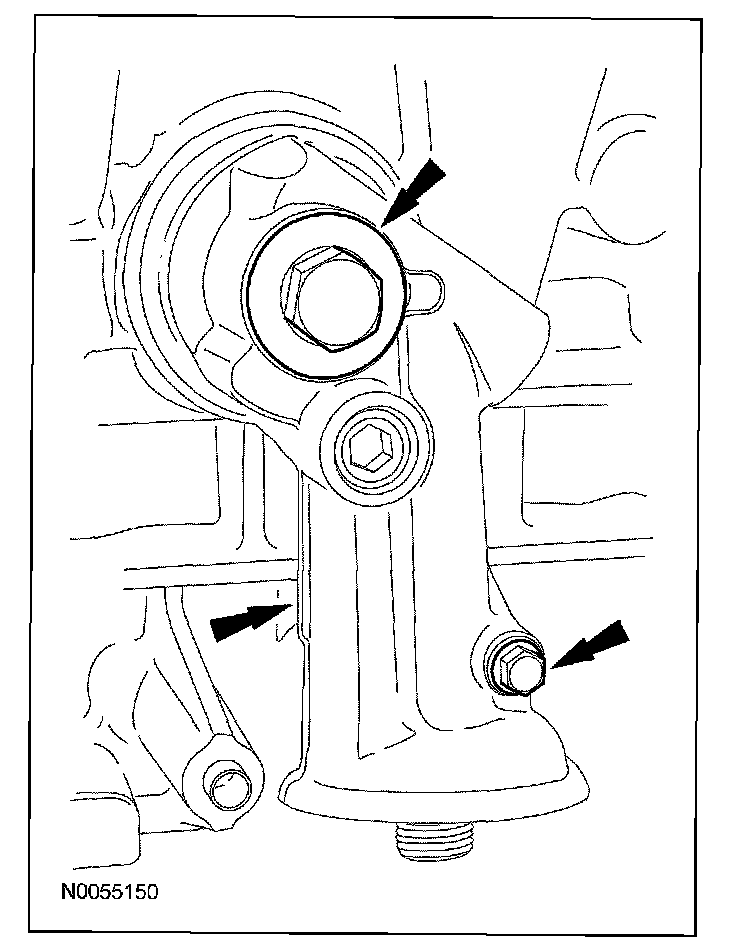 102. NOTE: The VCT bolt and the exhaust camshaft bolt must be discarded and new ones installed. However, the exhaust camshaft washer is reusable.