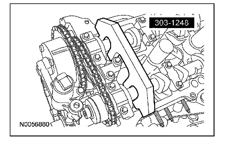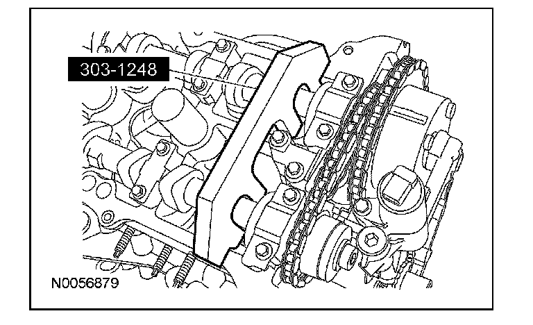 103. NOTE: When the special tool is removed, valve spring pressure will rotate the LH camshafts approximately 3 degrees to a neutral position.