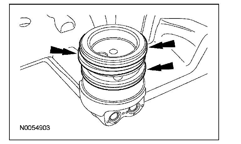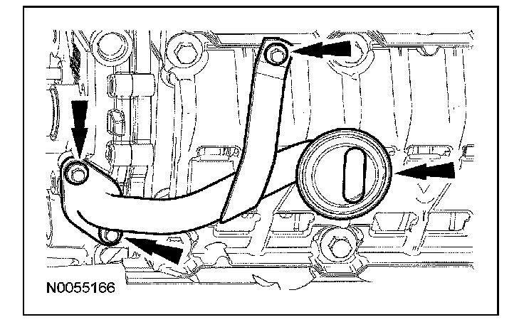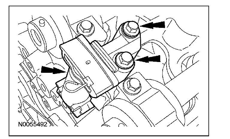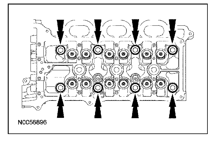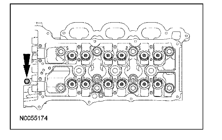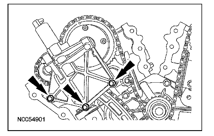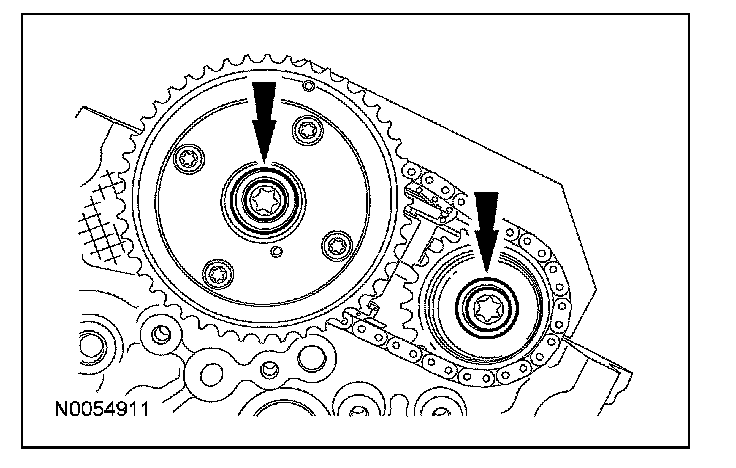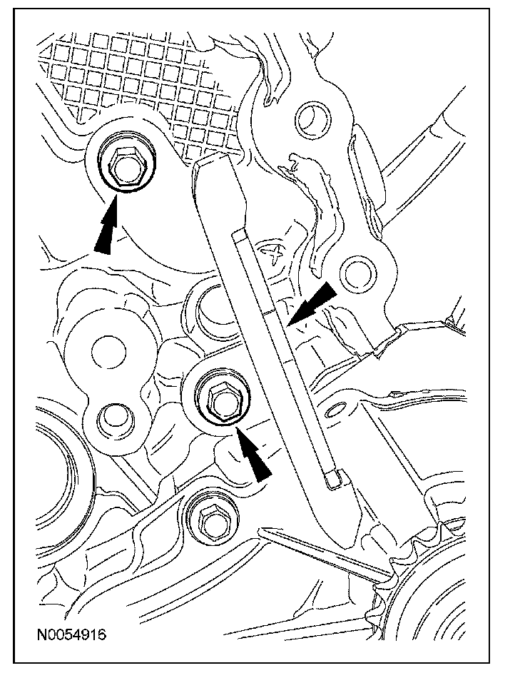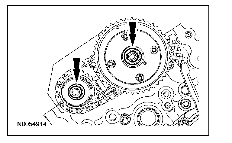 108. NOTE: The VCT bolt and the exhaust camshaft bolt must be discarded and new ones installed. However, the exhaust camshaft washer is reusable.