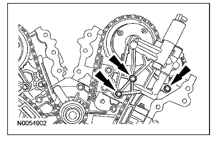 ^ Remove the RH VCT assembly, secondary timing chain and the RH exhaust camshaft sprocket as an assembly.