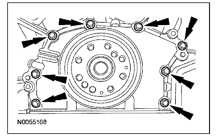 127. Remove the 8 crankshaft rear seal retainer bolts.