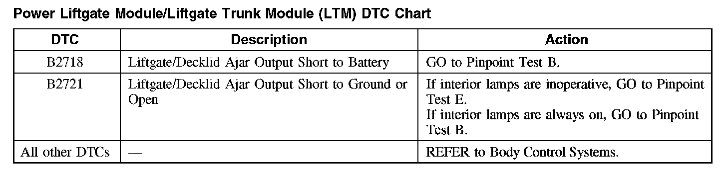 Power Liftgate Module/Liftgate Trunk Module (LTM) DTC Chart
