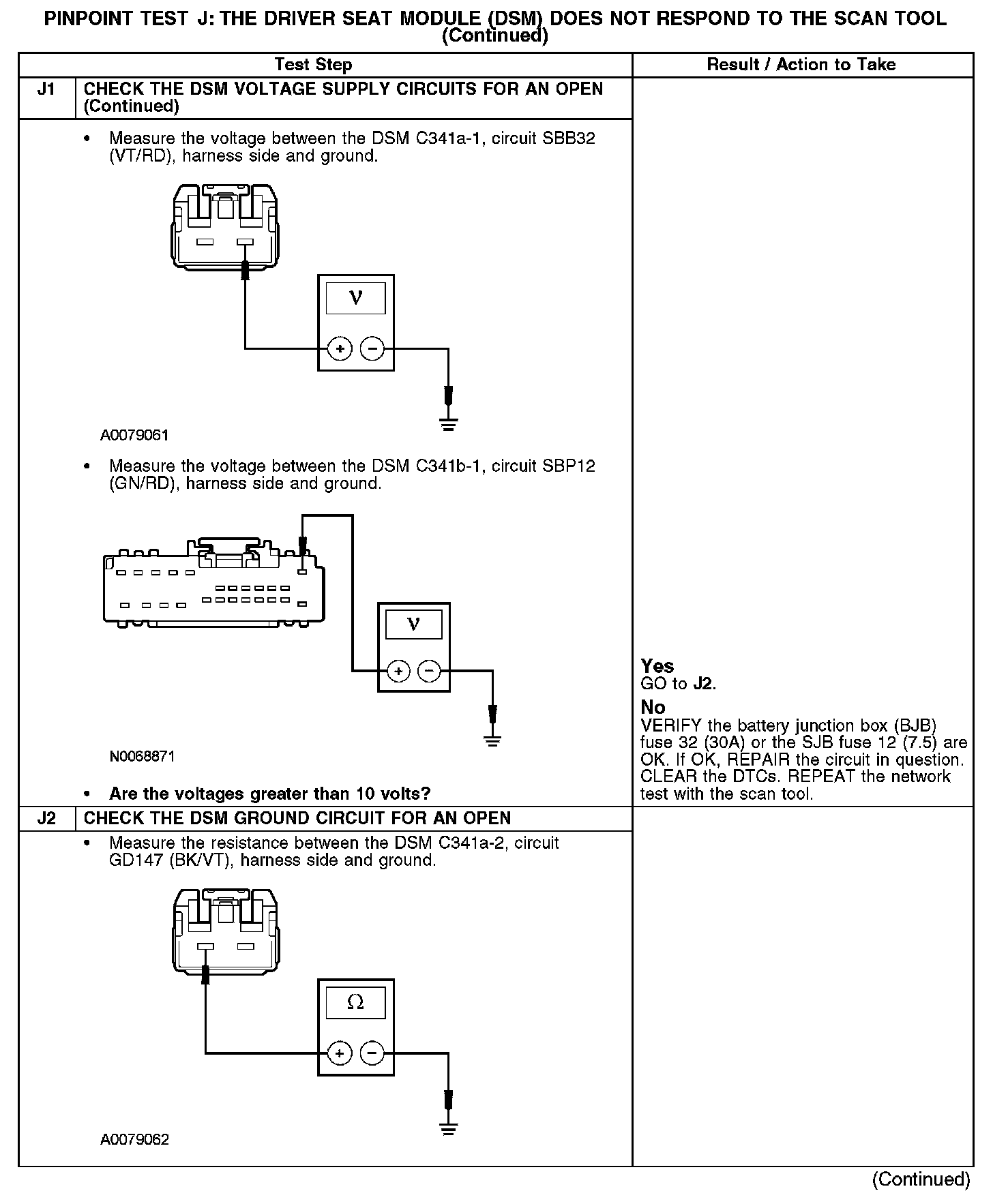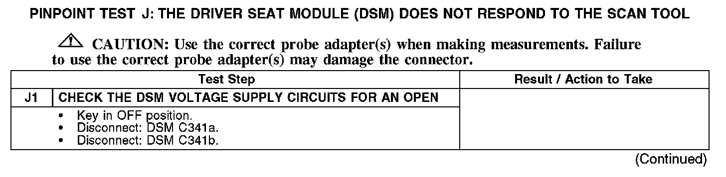 PINPOINT TEST J: THE DRIVER SEAT MODULE (DSM) DOES NOT RESPOND TO THE SCAN TOOLNormal Operation