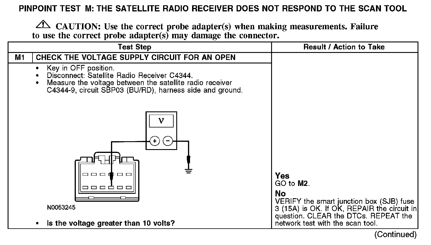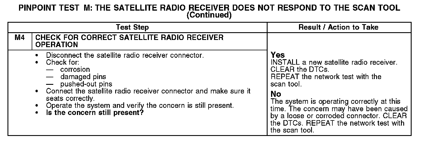 PINPOINT TEST M: THE SATELLITE RADIO RECEIVER DOES NOT RESPOND TO THE SCAN TOOL