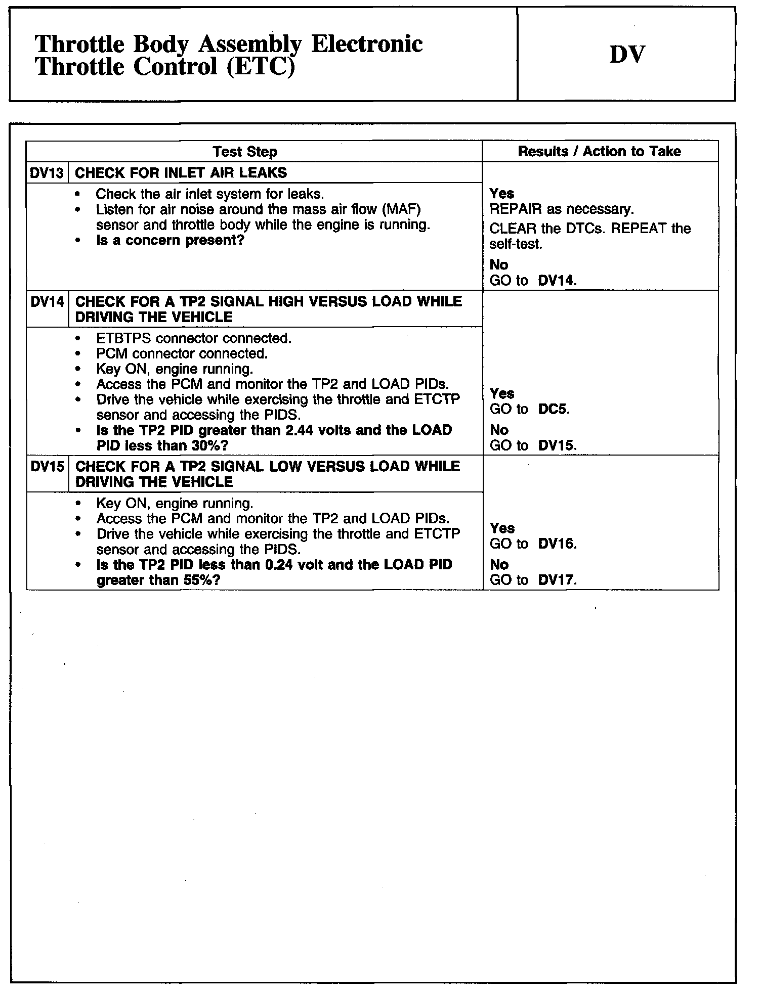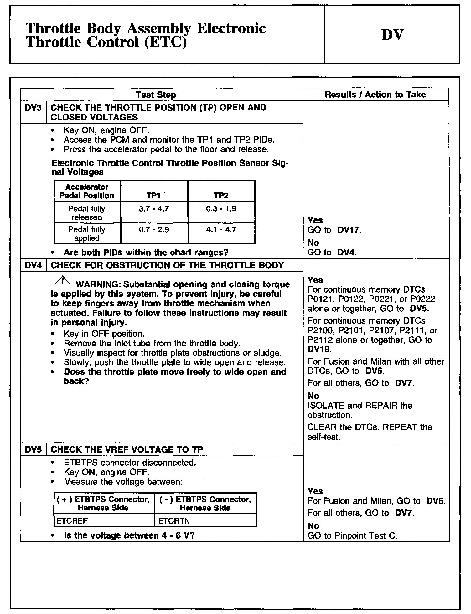 PINPOINT TEST DV: THROTTLE BODY ASSEMBLY ELECTRONIC THROTTLE CONTROL (ETC)Warning And Graph: