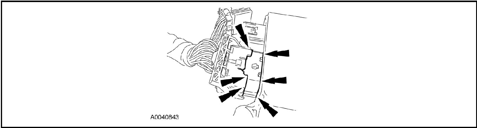 WARNING: Do not handle, move or change the original horizontal mounting position of the restraints control module (RCM) while the RCM is connected and the ignition switch is ON. Failure to follow this instruction may result in the accidental deployment of the Safety Canopy and cause serious personal injury or death.