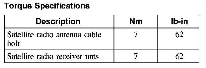 Torque Specifications: