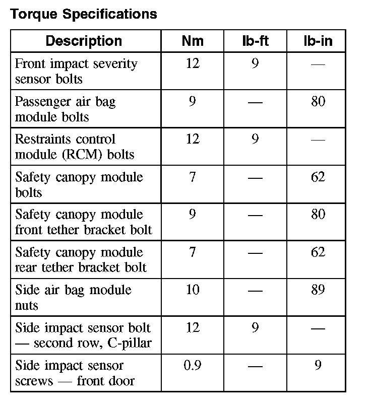 Torque Specifications: