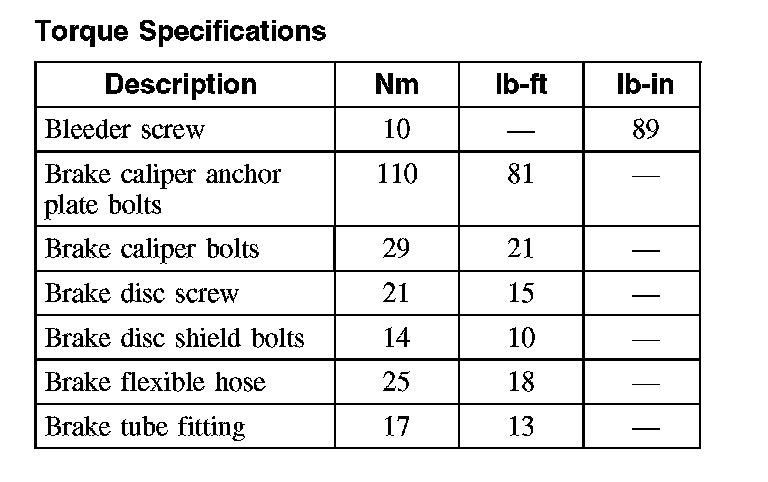 Torque Specifications, Rear
