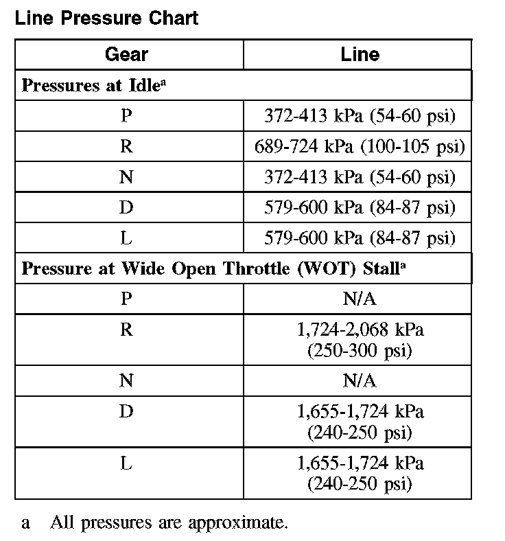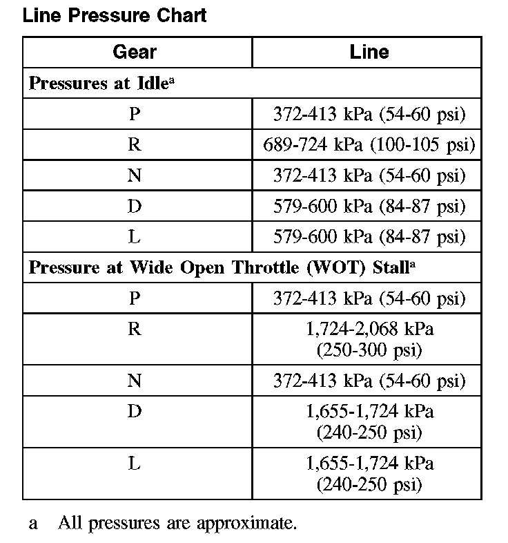 Line Pressure Chart:
