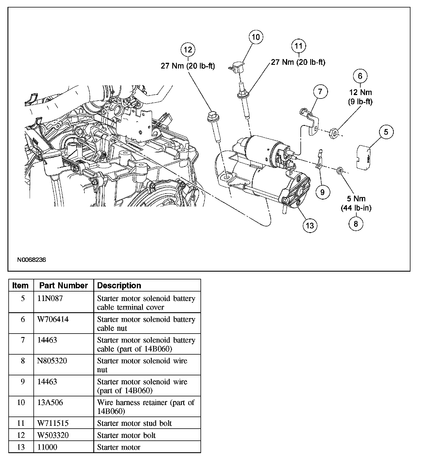 10. Remove the starter motor stud bolt, bolt and the starter motor.