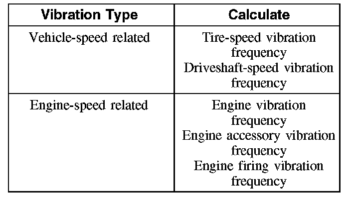 After carrying out the road test as described, the vibration was determined to be either vehicle-speed related or engine-speed related. That determination will identify the vibration frequency calculations that should be done.