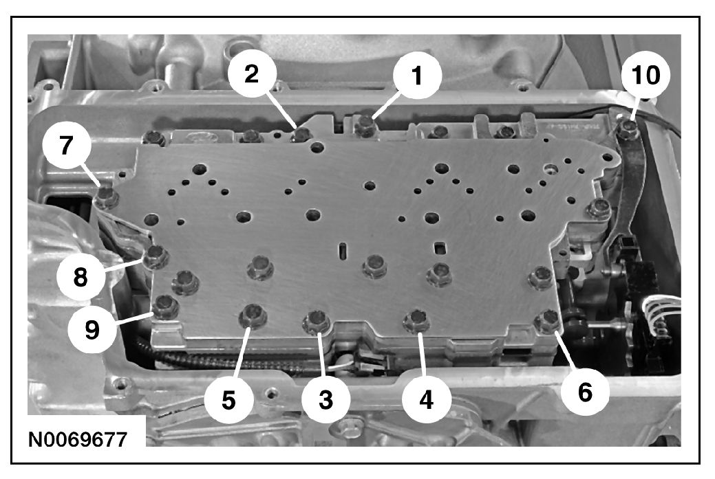 112. Install the main control valve body bolts. Tighten the bolts in the sequence shown.