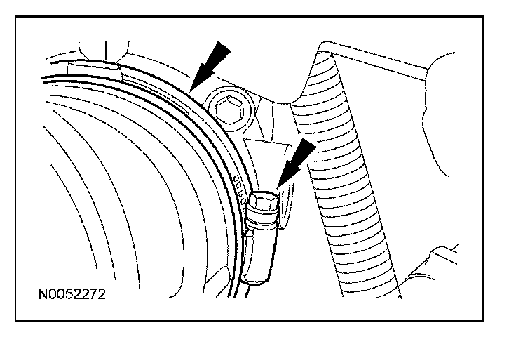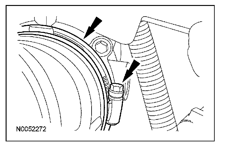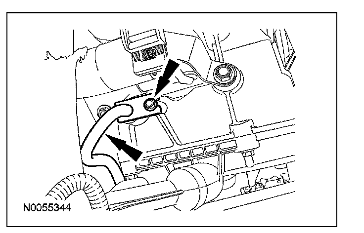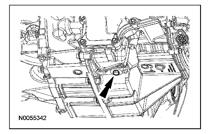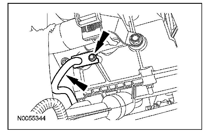12. Remove and discard the transmission fluid cooler tube bolt and remove the transmission fluid cooler tube.