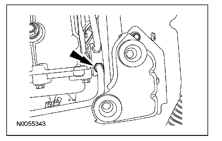 10. Remove the nut, rotate the transmission fluid filler tube counterclockwise 90 degrees and remove the transmission fluid filler tube.