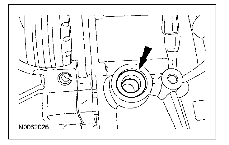 13. Inspect the transaxle case to make sure that the transmission fluid cooler tube seal and backing ring were removed with the transmission fluid cooler tube and are not stuck in the transaxle case. If the transmission fluid cooler tube seal or backing ring are stuck in the transaxle case, remove the seal and backing ring.