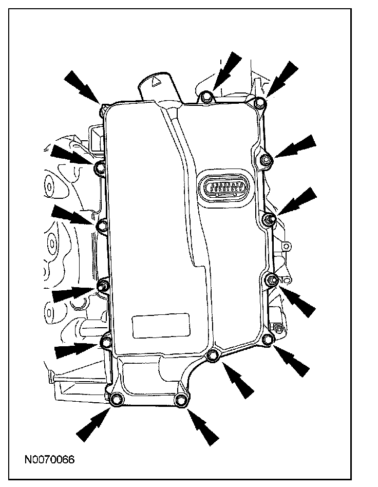11. CAUTION: Inspect the 20-pin solenoid body connector seal to make sure that the seal is on the inside of the main control cover. Transmission fluid leak will occur.