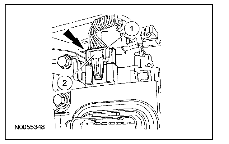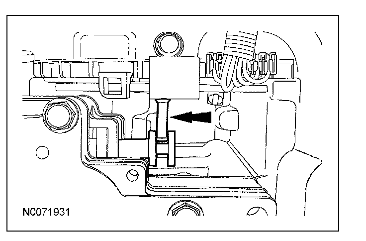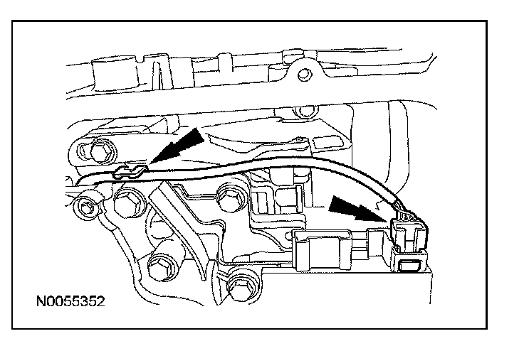 14. Disconnect the transaxle electrical connector and remove the wiring harness fastener from the main control cover stud.