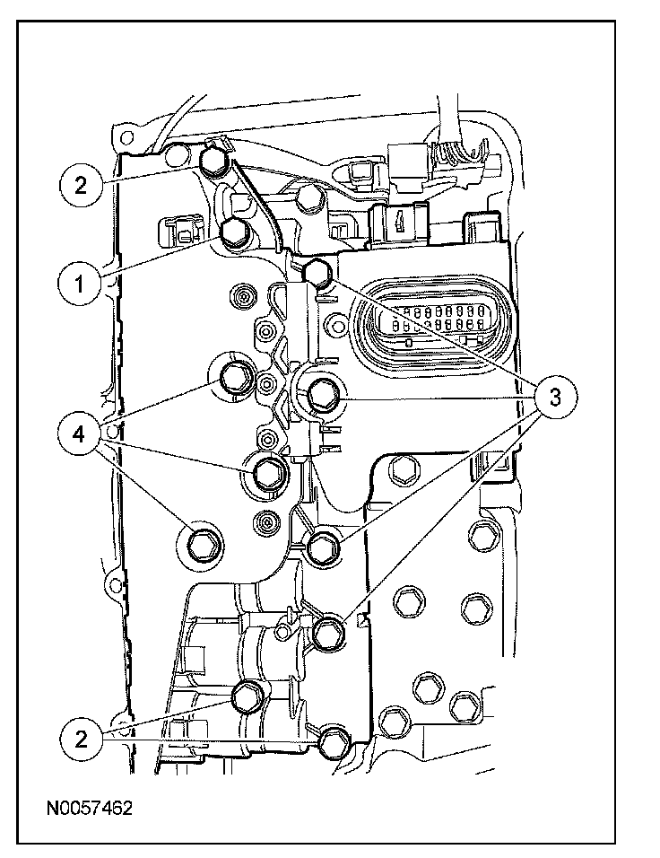 3. Install the TR sensor detent spring and the 10 bolts. Tighten the bolts in the sequence shown.