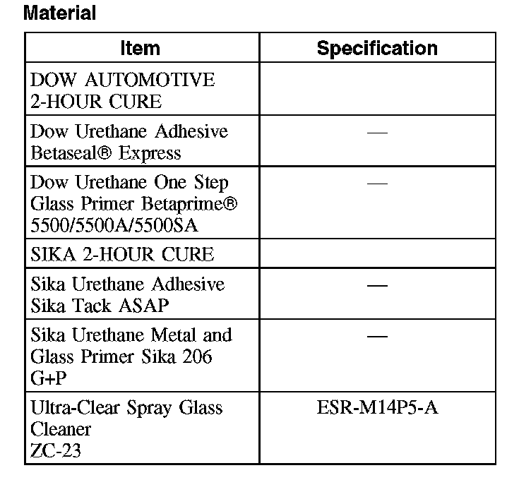 - Be sure to use the same brand and cure-rate products for the adhesive and primer. Do not mix different brands of urethane and primer. Refer to the Material Chart in this procedure.