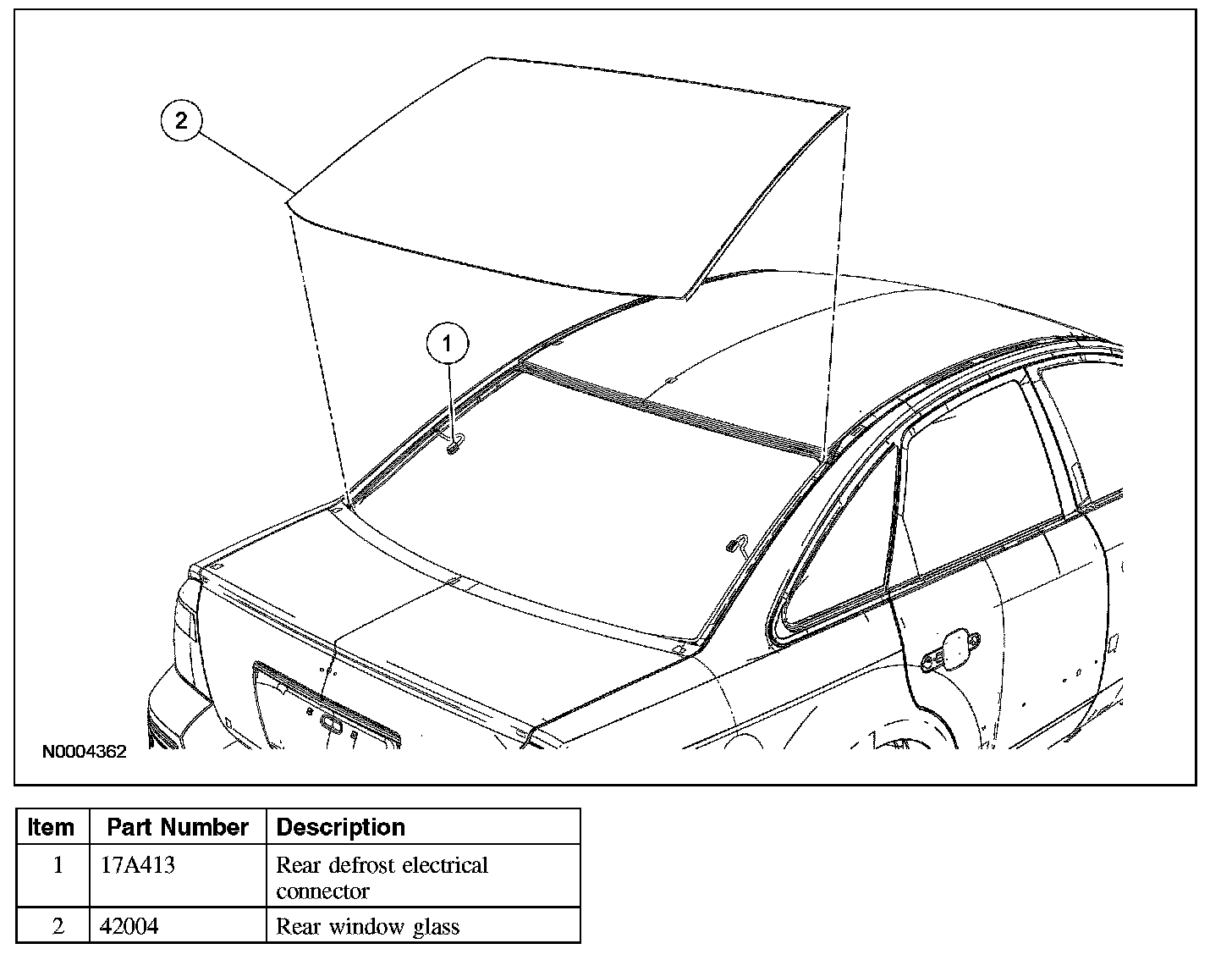 1. Dry fit the rear window glass to the existing urethane adhesive bead on the body pinch weld. Align the rear window glass in the opening for a uniform fit.