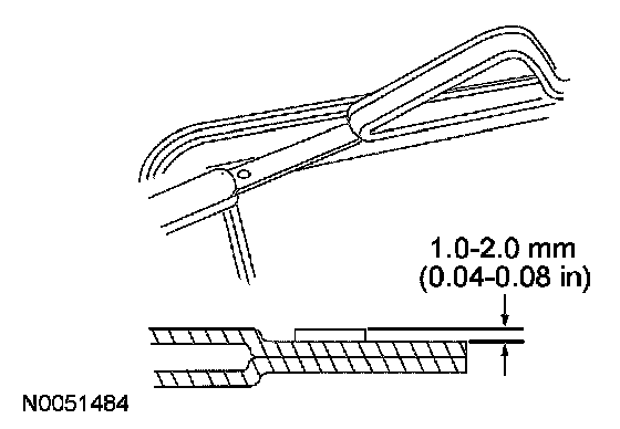 Using an appropriate tool, trim the urethane adhesive leaving a 1 mm to 2 mm (0.04 in to 0.08 in) base of original equipment urethane on the pinchweld.