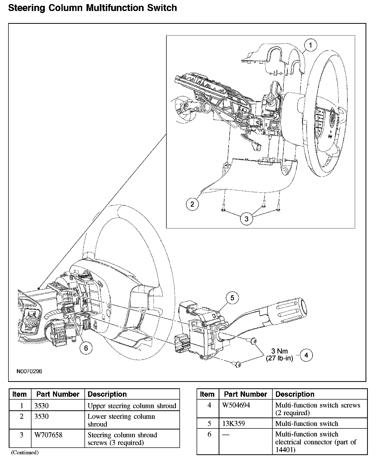 Steering Column Multifunction SwitchSteering Column Multifunction Switch: