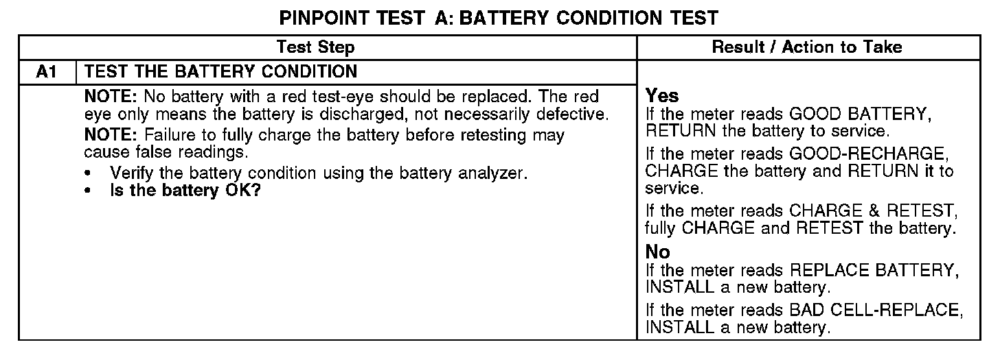 PINPOINT TEST A: BATTERY CONDITION TESTNormal Operation