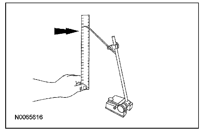 1. Measure the distance between the flat level surface and the center of the lower control arm-to-subframe bolt (measurement A).