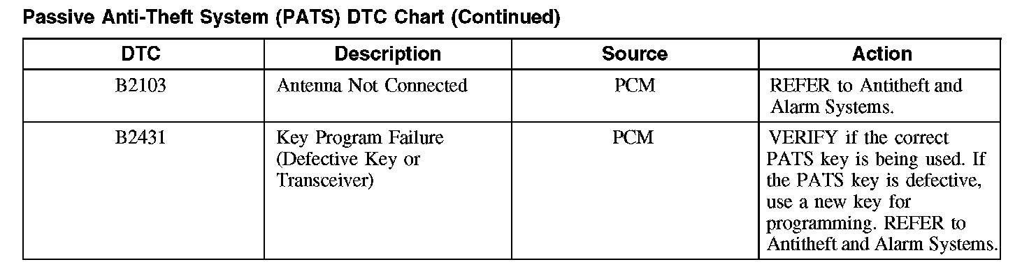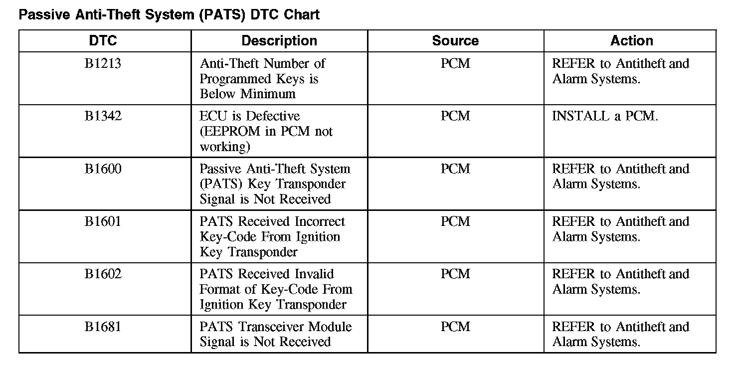 Passive Anti-Theft System (PATS) DTC Chart
