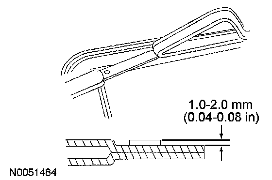 Using an appropriate tool, trim the urethane adhesive leaving a 1 mm to 2 mm (0.04 in to 0.08 in) base of original equipment urethane on the pinchweld.