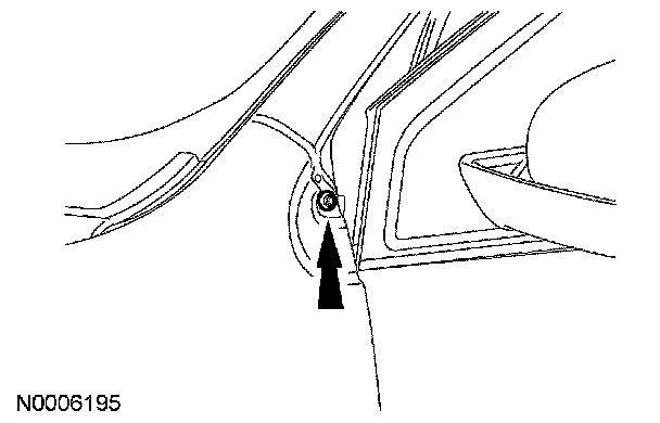 10. Remove the side mirror trim panel located at the top rear portion of the fender to gain access to the fender upper rear mounting bolt.