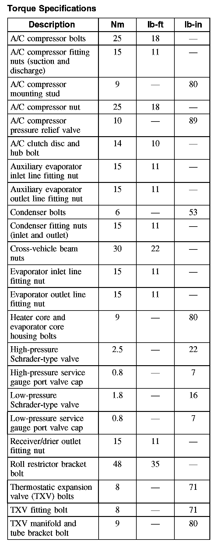 Torque Specifications