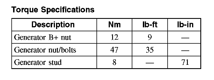 Torque Specifications:
