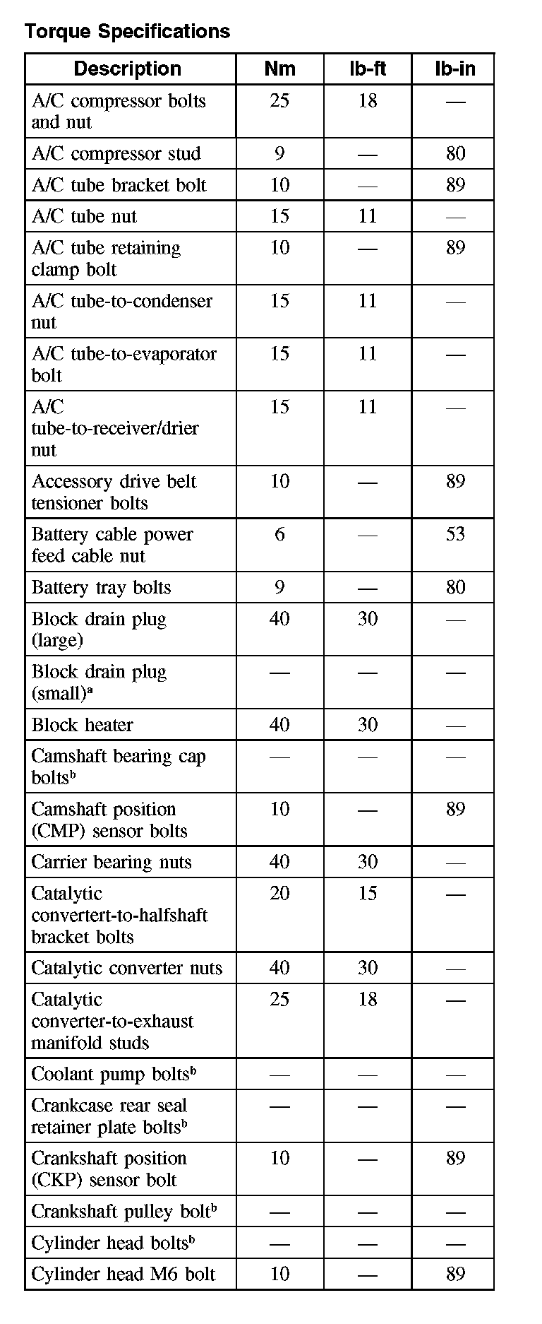 Torque Specifications