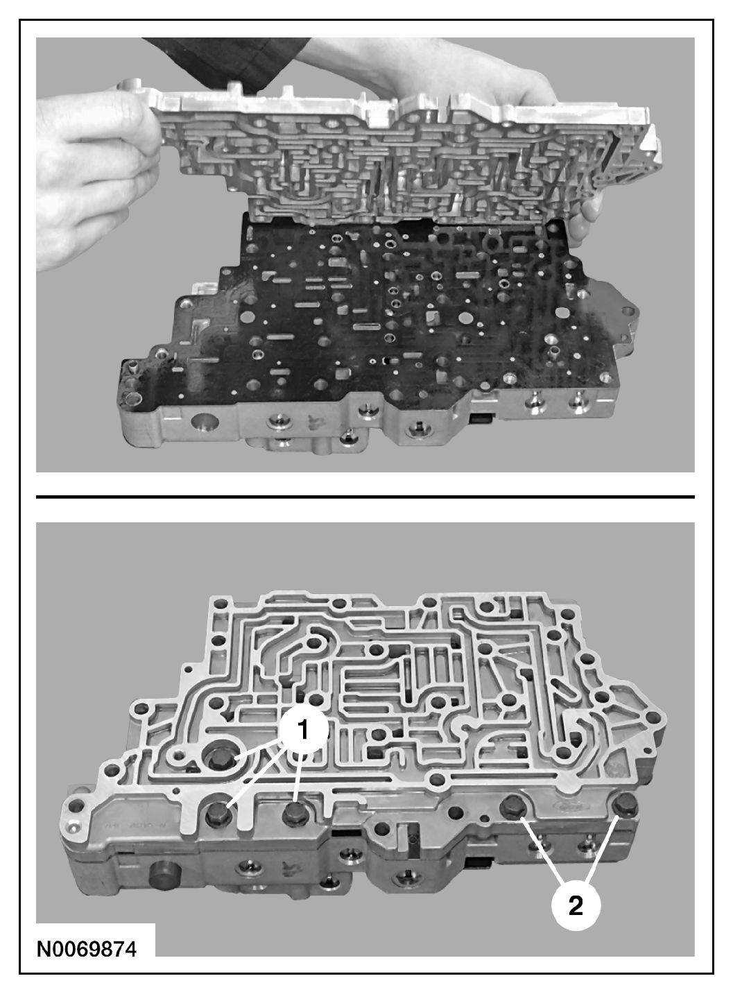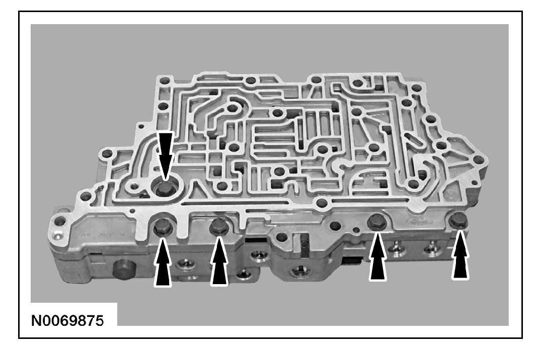 6. Remove and discard the lower valve body separator plate and gasket.