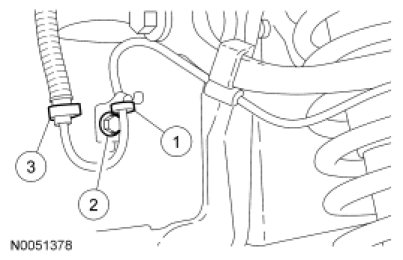 7. Position the brake line into the retaining clips at the rear of the No. 2 crossmember.